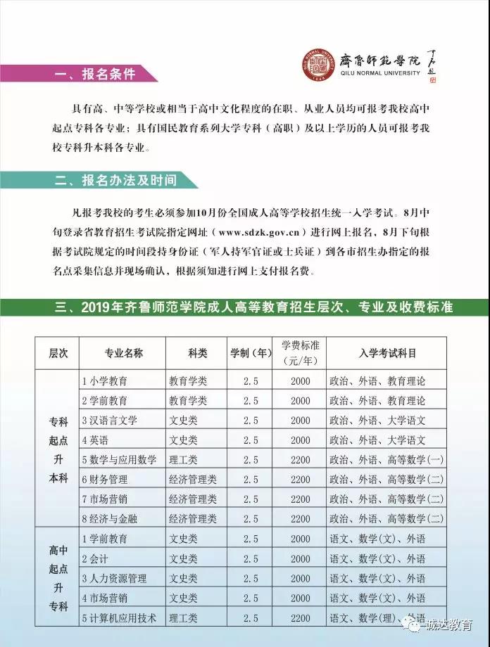 执行省物价部门统一的收费标准。学历与待遇凡被录取的学生学习期满,修完教学计划规定的全部课程,成绩合格者颁发经教育部电子注册的齐鲁师范学院相应层次的成人高等教育毕业证书,国家承认学历。符合条件的本科毕业生授予学士学位。